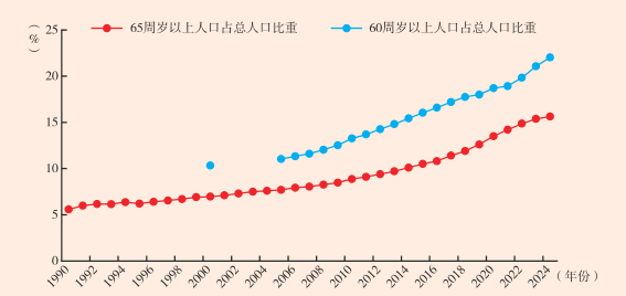 图4 1990—2024年中国的人口老龄化进展