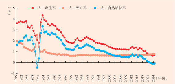 图5 1949—2024年中国的出生率与死亡率演进