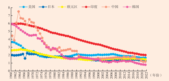 图6 1960—2022年世界主要经济体总和生育率的比较