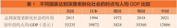 与其他主要发达经济体不同,中国的老龄化还面临着“未富先老”的挑战。如表1所示,在美国、日本与韩国各自达到深度老龄化社会的时候,其人均GDP分别约为5.3万美元、4.0万美元与3.5万美元;而在中国达到深度老龄化社会时,其人均GDP仅约为1.3万美元。“未富先老”的现象至少将为养老体系带来两大挑战:第一,对个人而言,其积累的储蓄或资产相对而言更难以满足老龄时期的需求;第二,考虑到金融市场发达程度与人均GDP水平高度相关,“未富先老”国家的金融市场发展程度可能较其他发达经济体更为落后,因此也就更难以满足一国通过养老金融的发展来应对老龄化社会冲击的需要。